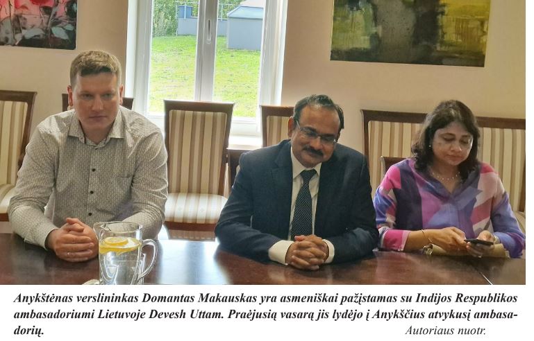 Praėjusią vasarą Anykščiuose viešėjo Indijos Respublikos ambasadorius Lietuvoje Devesh Uttam. Indijos ambasadorių po mūsų miestą lydėti buvo pakviestas D. Makauskas.