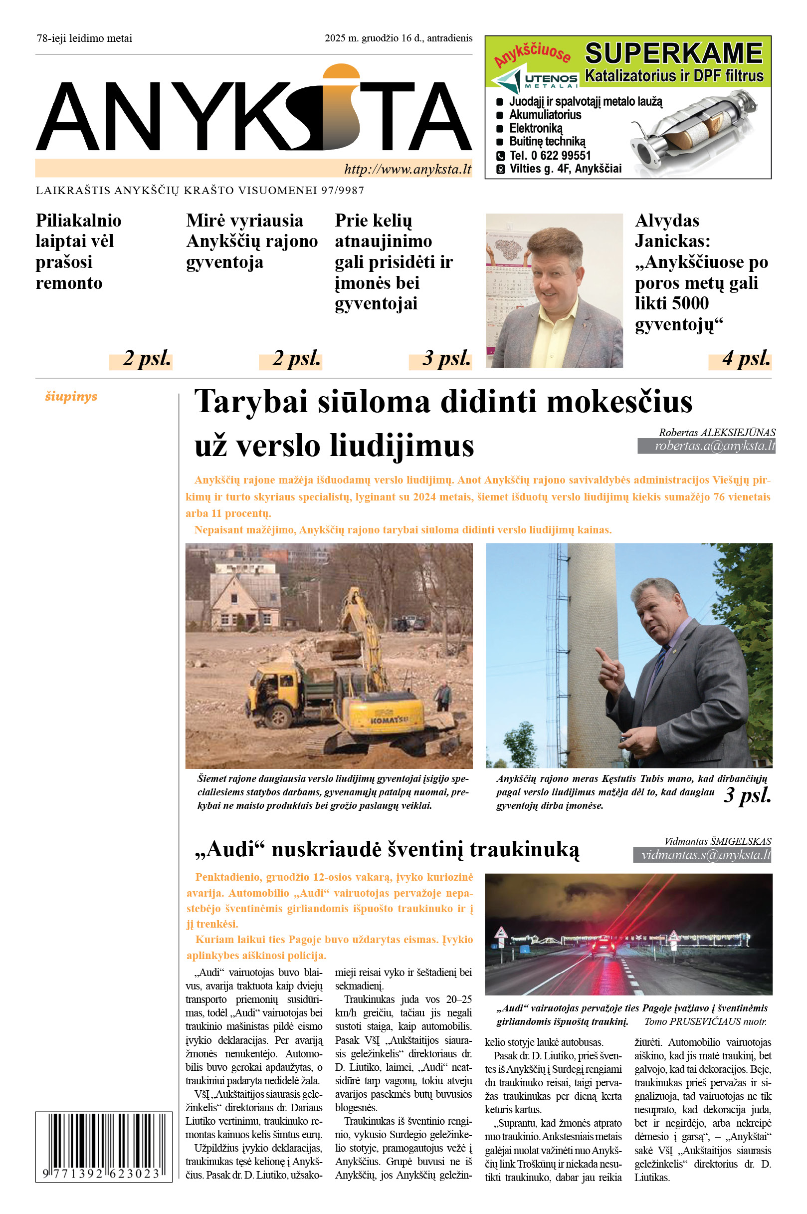 © Anykšta, tel/faksas (8 381) 5 94 58, reklamos skyrius +370 686 33036, el. paštas anyksta@anyksta.lt