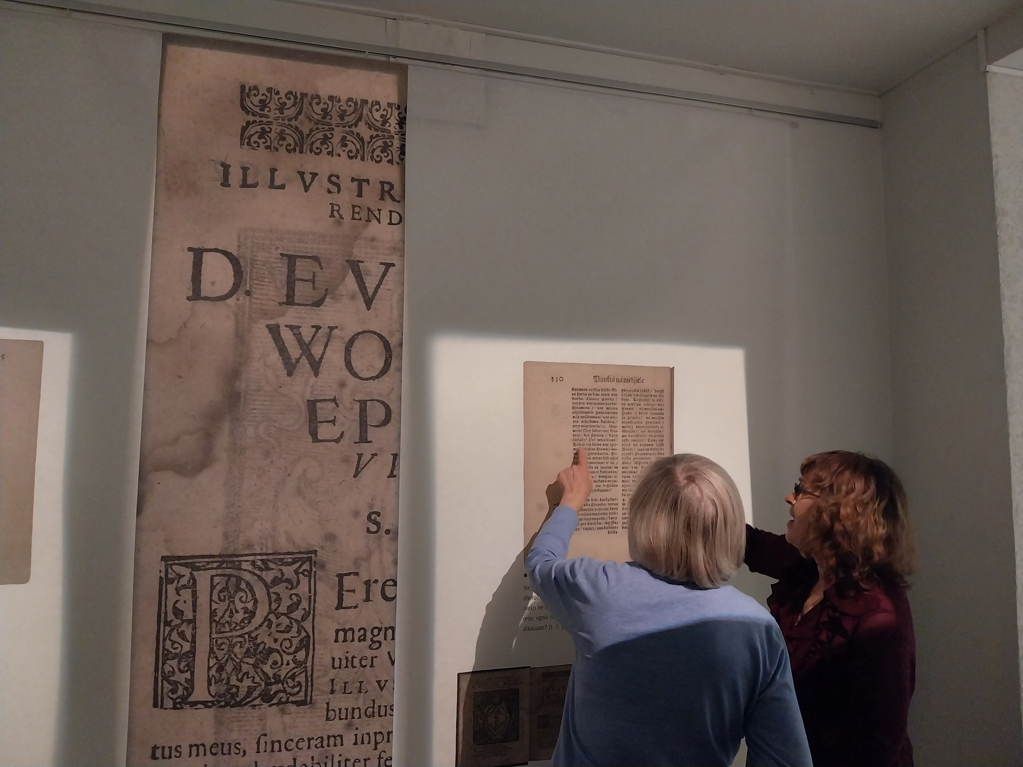 Senaisiais rašmenimis parašytus pamokslus lankytojams perskaityti padėjo Rita Babelienė (dešinėje).
