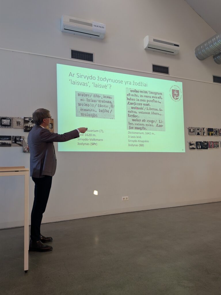 Lietuvos valstybės atkūrimo dieną minėjome kartu su Vilniaus universiteto dėstytoju, kalbininku Jurgiu Pakeriu. Skaitydamas paskaitą „Konstantino Sirvydo mįslės“ profesorius svarstė ar žinome, kaip Sirvydas atrodė? Ar savo pamokslams jis ruošė skaidres? Ar yra parašęs gramatiką? Ar jo žodynuose yra žodžiai „valstybė“, „nepriklausomybė“, „vasaris“?