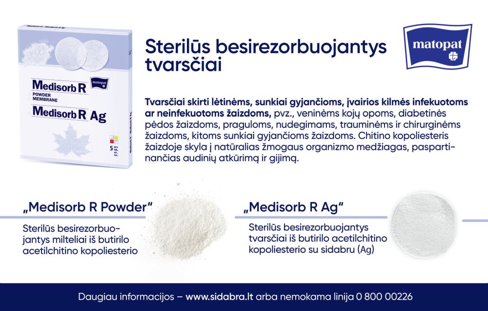Klinikiniai tyrimai ir praktinė patirtis rodo, kad MEDISORB bioskaidūs tvarsčiai išsiskiria įvairiapusiu poveikiu: