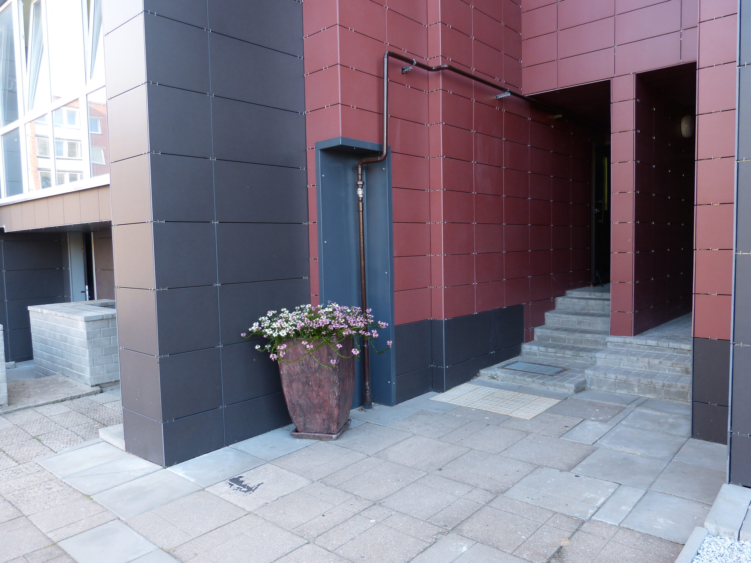 Labai gražiai tvarkosi ir Statybininkų g. 12 namas. Prisodinta augalų, visada tvarkingai nupjauta žolė. Neperkrauta, labai tvarkinga.