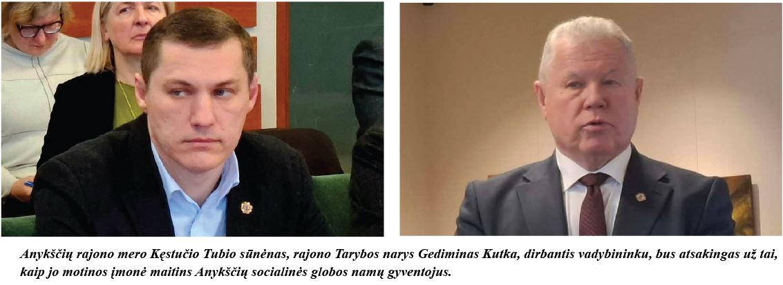 Anykščių socialinės globos namai vasario mėnesį sudarė naują sutartį su Anykščių rajono mero Kęstučio Tubio sesers Danutės Kutkienės individualia įmone dėl maitinimo paslaugų teikimo.