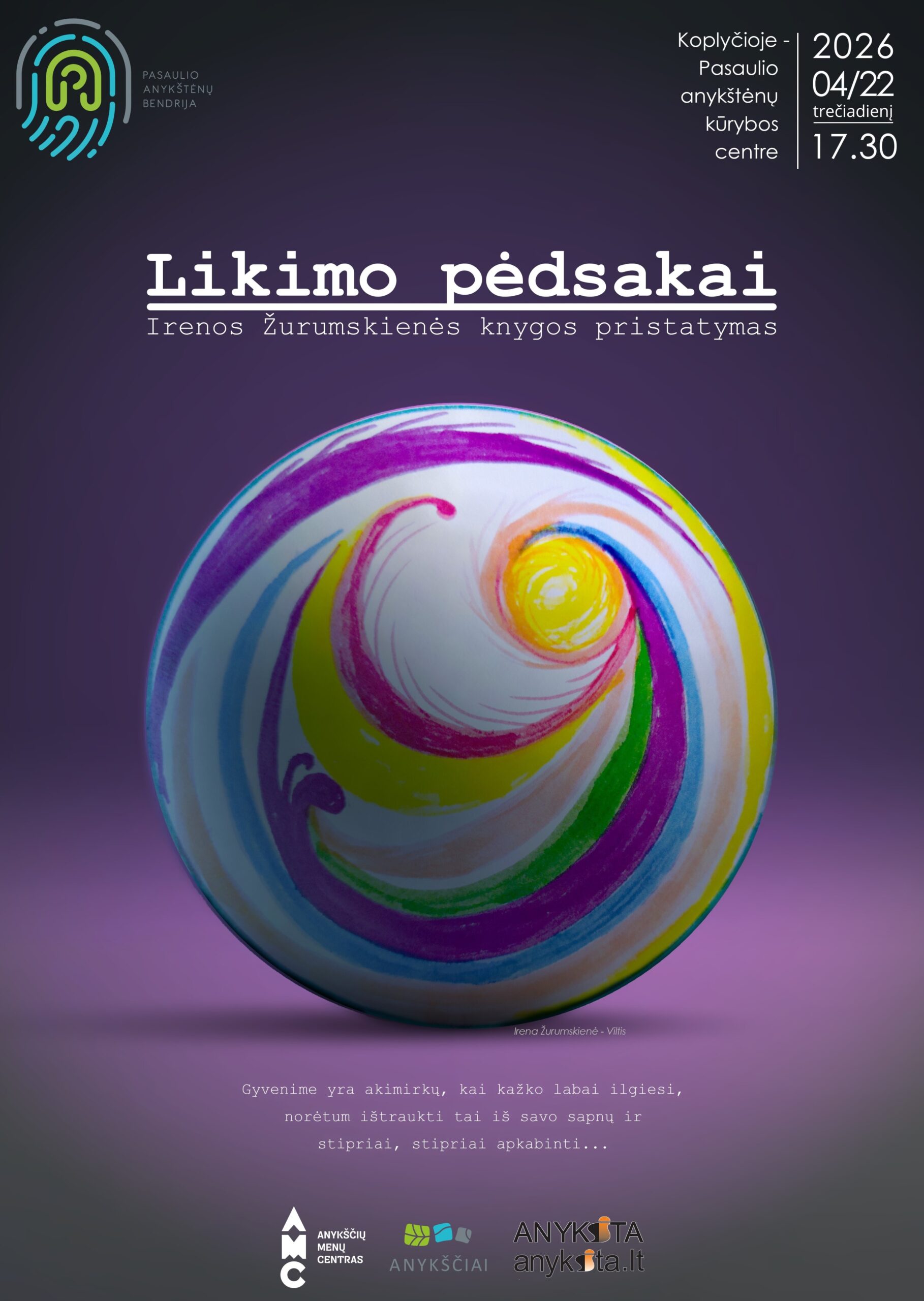Maloniai kviečiame į Irenos Žurumskienės knygos „Likimo pėdsakai“ pristatymą, vyksiantį balandžio 22 dieną, trečiadienį, 17:30 val. Anykščių koplyčioje (Vilniaus g. 36).