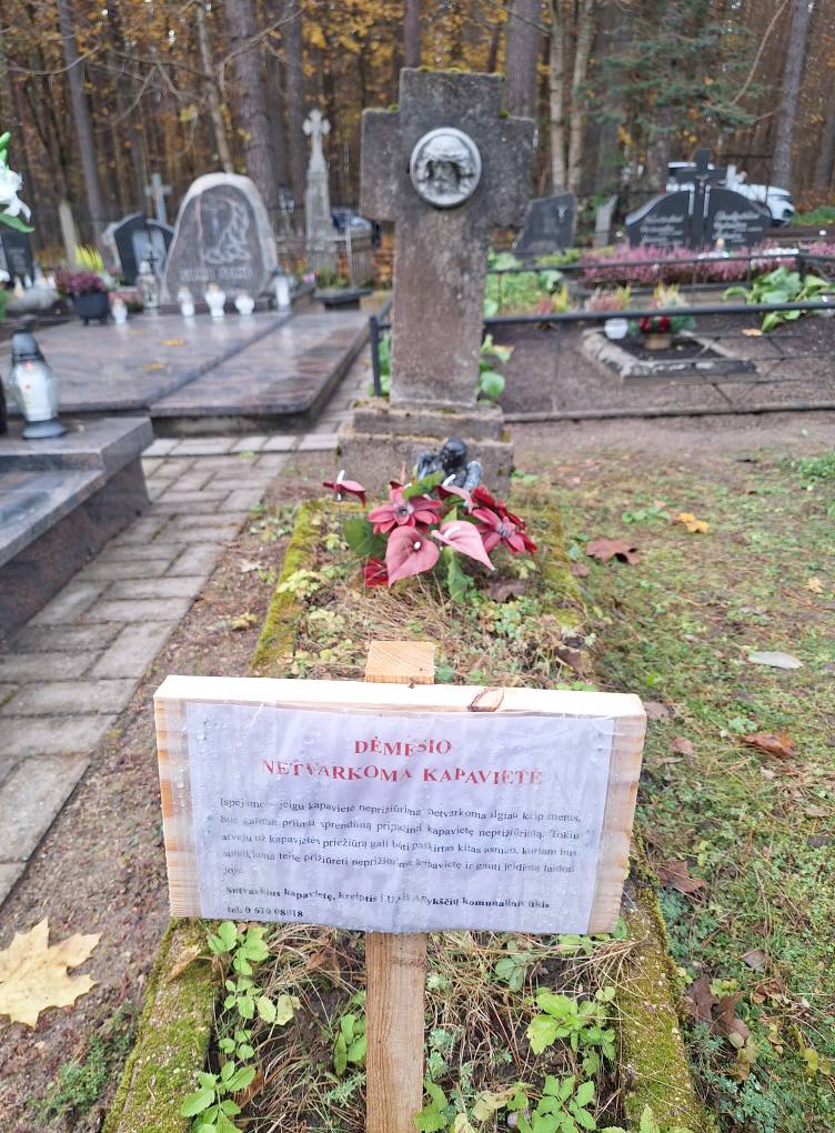 Takus tegu sutvarko.Vien duobės.Tualetai kokie.Budelės.Čia tai baisu.O kapeliai ir yra kapeliai.Yra žmonių ,kurie tik du kartus gali atvykti iš užsienio,kitiems giminėms vienodai tie artimieji,nes buvo taip auklėti.Kiti samdo moteris tvarkyti, kiti mirę ir nespėję pasirūpinti tvarkymu….gal šalia esantys ,kurie tvarko gali nors žoles aprauti,jeigu vaidina didžiausias tikinčiaisiais. Aišku,tai jau kiti reikalai…Bet tos lentelės…