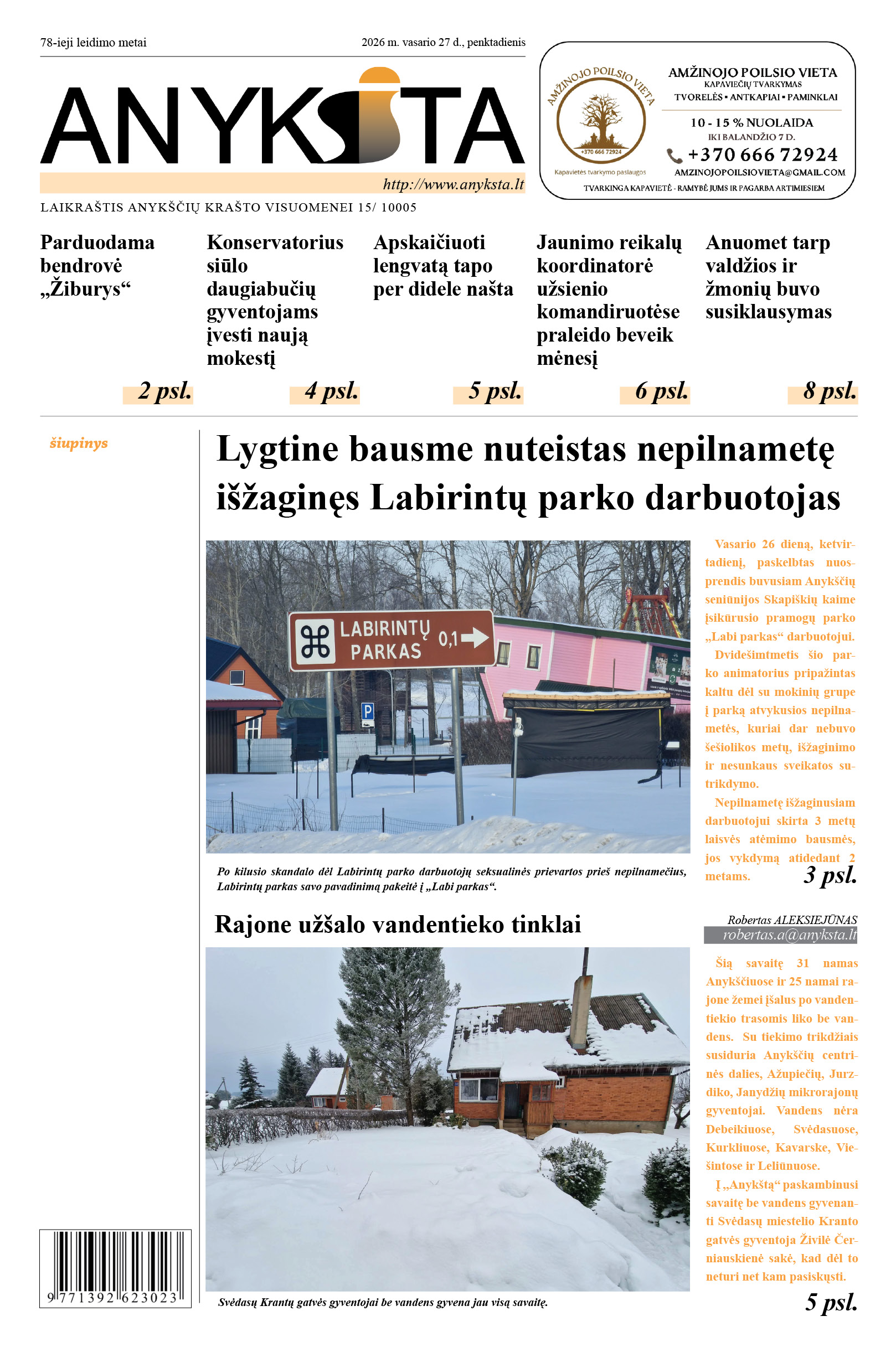 © Anykšta, tel/faksas (8 381) 5 94 58, reklamos skyrius +370 686 33036, el. paštas anyksta@anyksta.lt