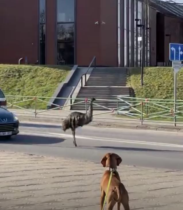 Sekmadienio, balandžio 19-osios, rytą po Anykščius vaikščiojo strutis emu ir traukė praeivių dėmesį.