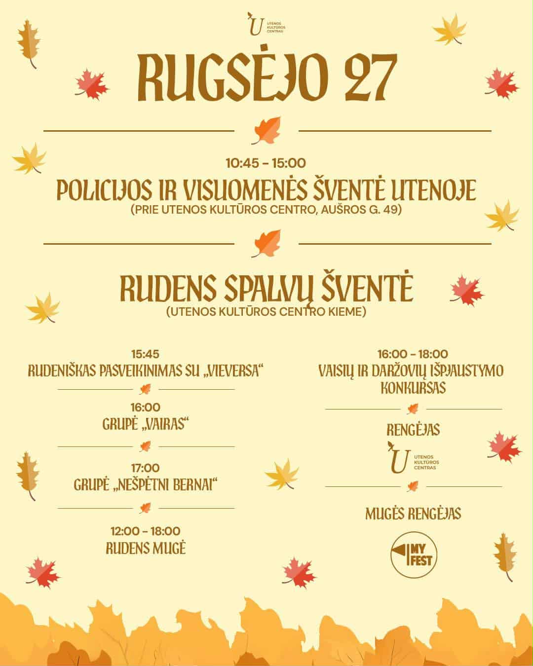 Utena Rugsėjo 27 diena RUDENS-SPALVŲ-ŠVĖNTE Be manes.