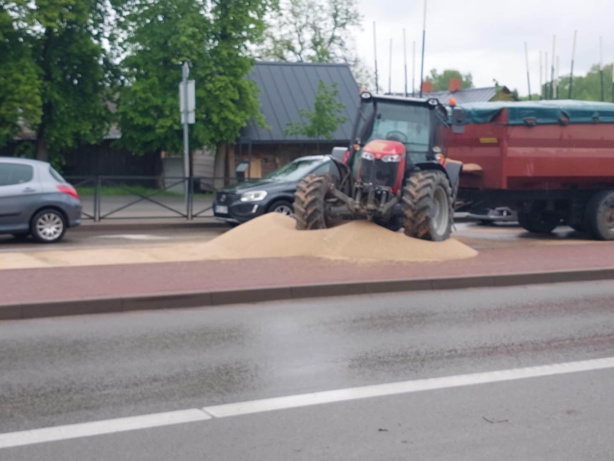 Po avarijos ant kelio išbyrėjo grūdai, kuriam laikui buvo sutrikdytas eismas.