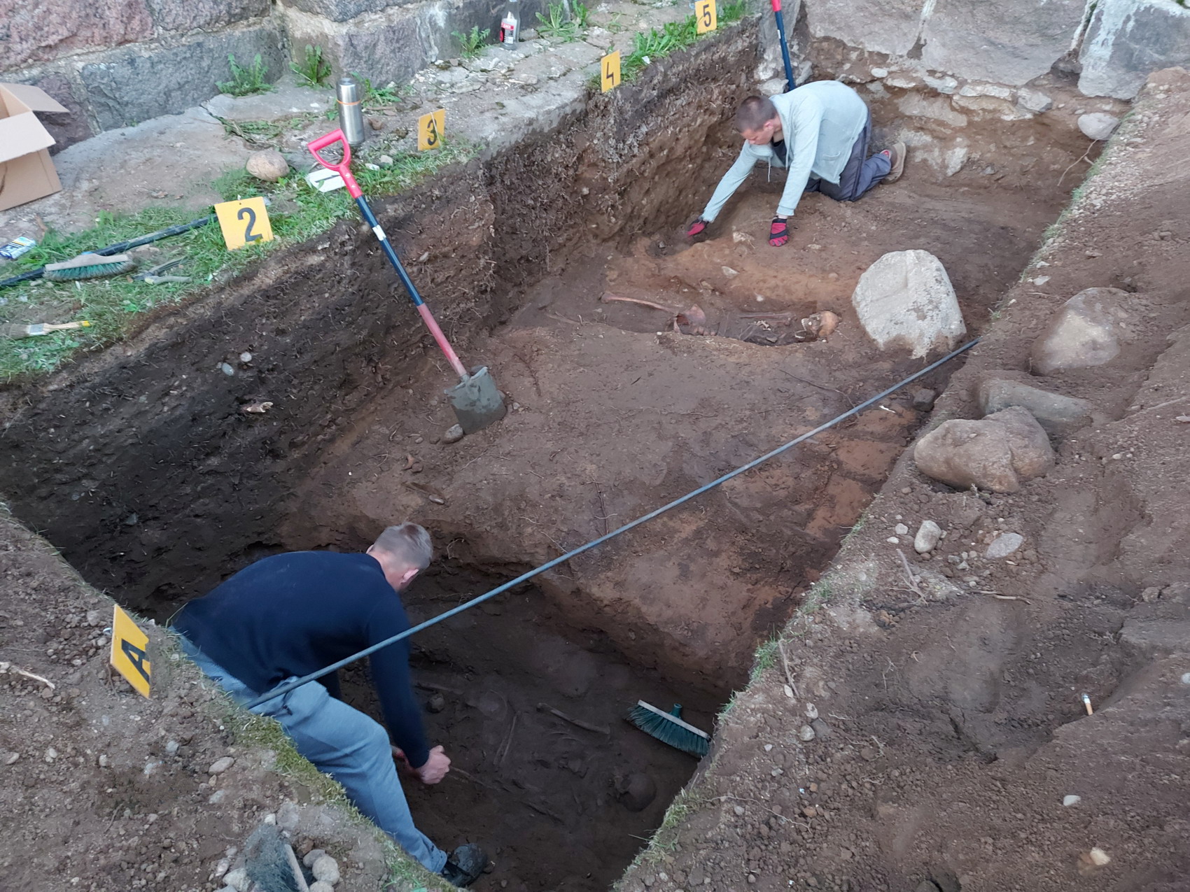 – Jei neklystu, darbus tęsėte ir 2023 metų vasarą. Tą kartą čia aptikote „Napoleono akmens“ dvynį – XVI amžiaus vidurį menantį ponų Petkevičių Luodžių dvaro riboženklį. Akmuo buvo gana giliai. Ar galima teigti, kad senasis riboženklis kadaise buvo sąmoningai įverstas į duobę ir užkastas?