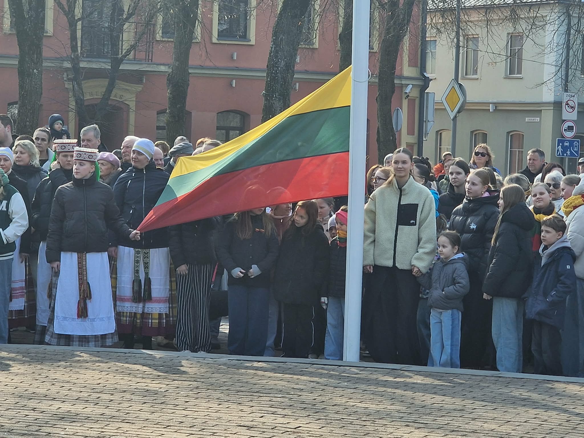 Po Šventų Mišių iš Anykščių bažnyčios į vėliavos pakėlimo šventę einančius anykštėnus pasitiko Anykščių konservatorių postas – vietiniai politikai anykštėnus vaišino saldainiais ir arbata.