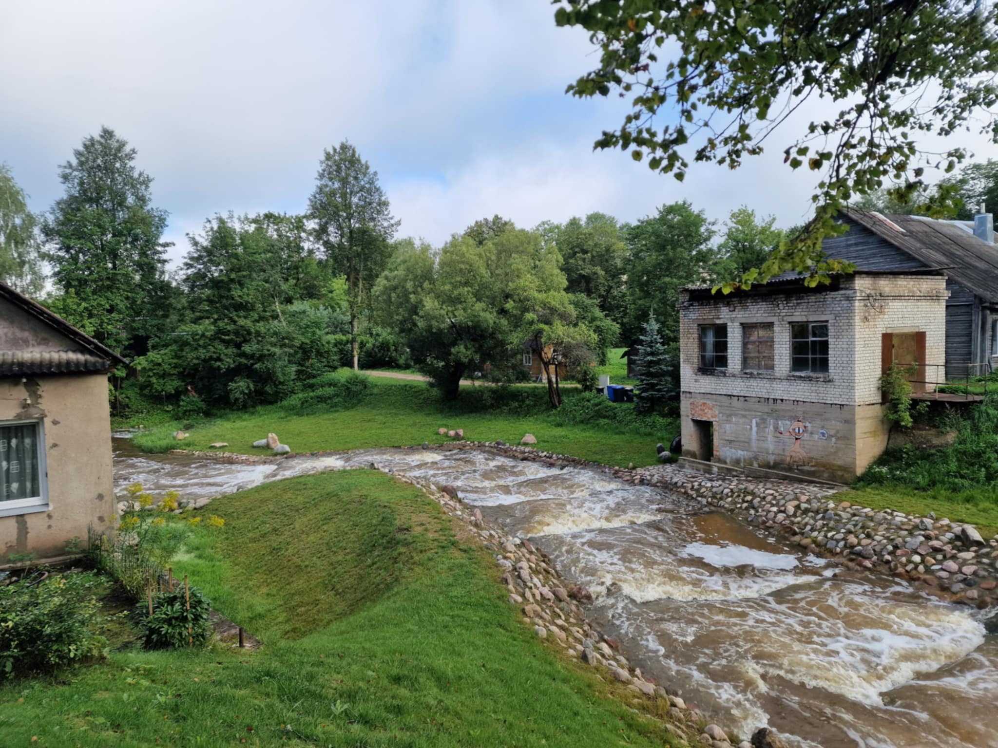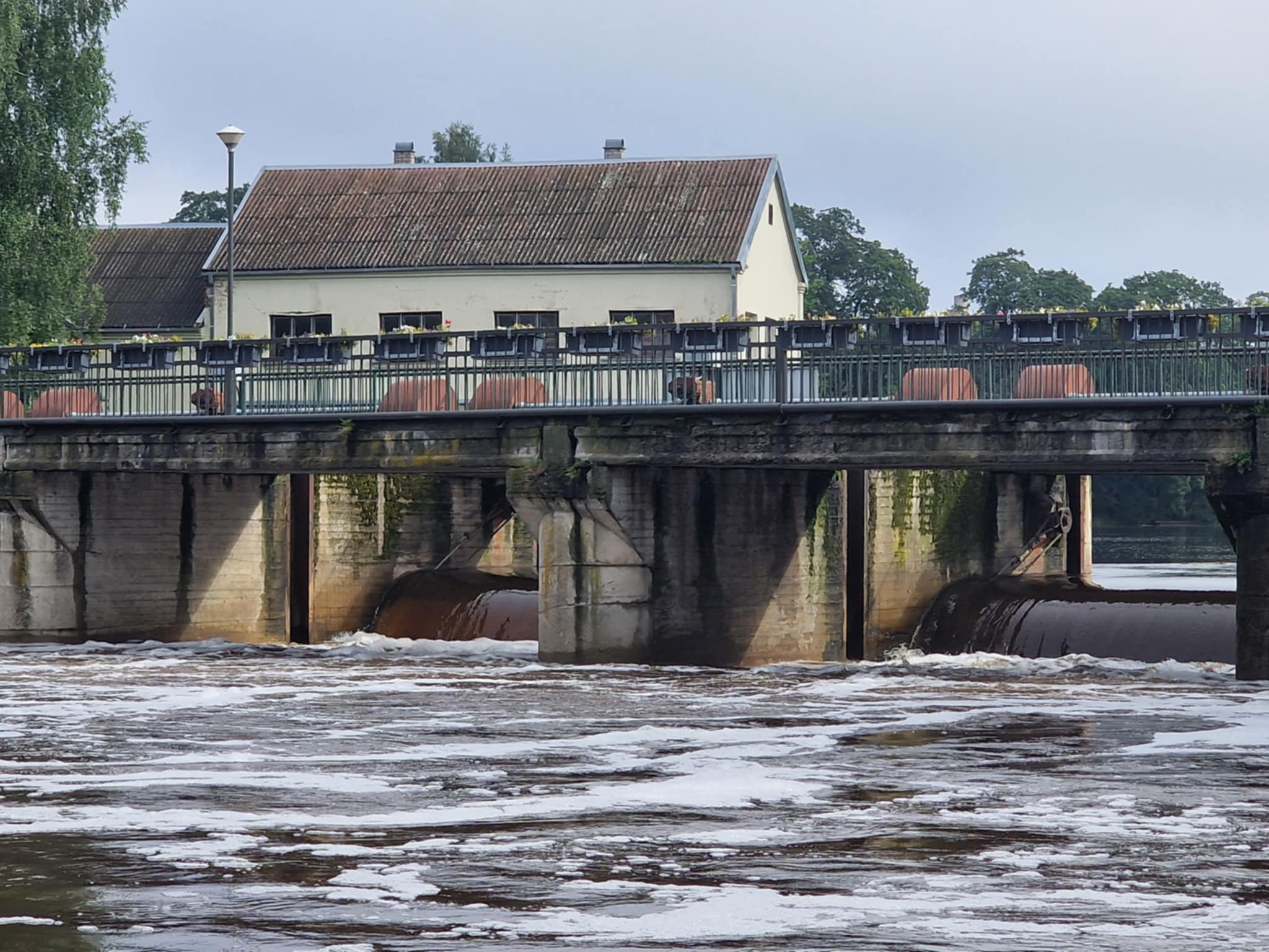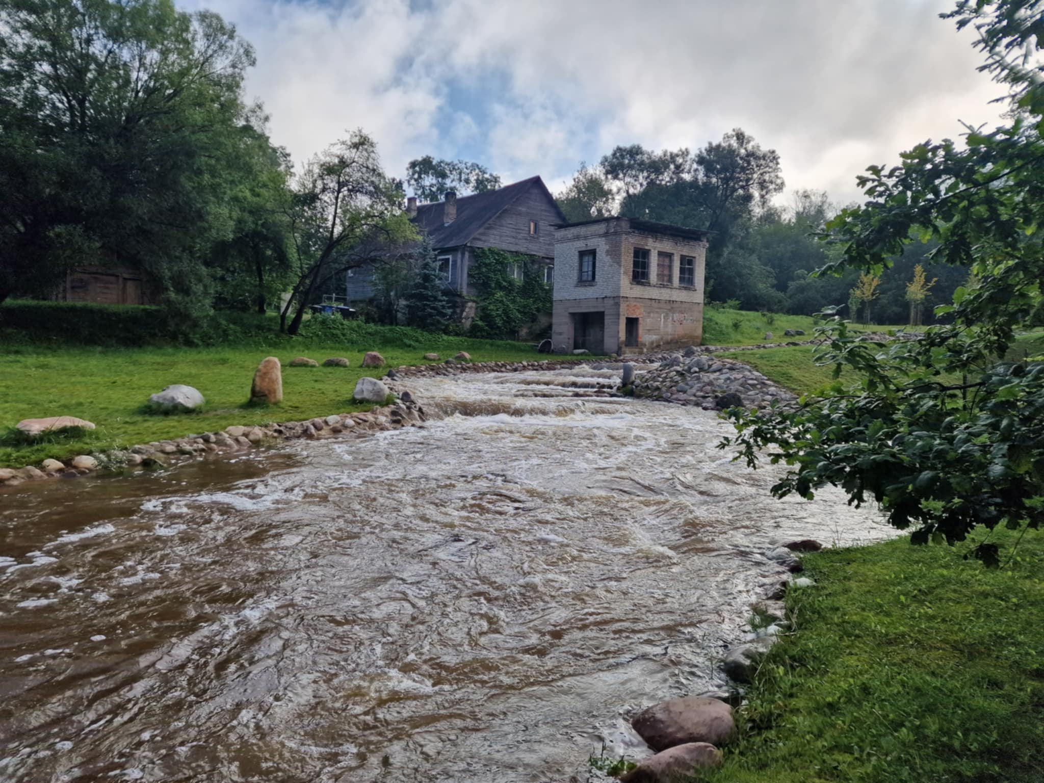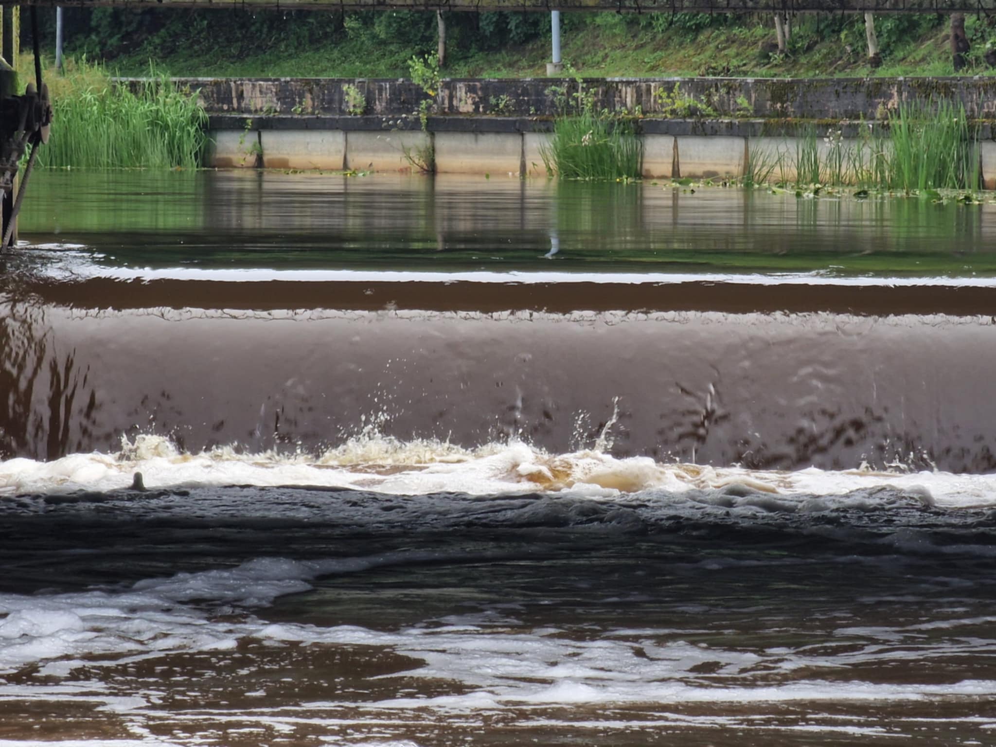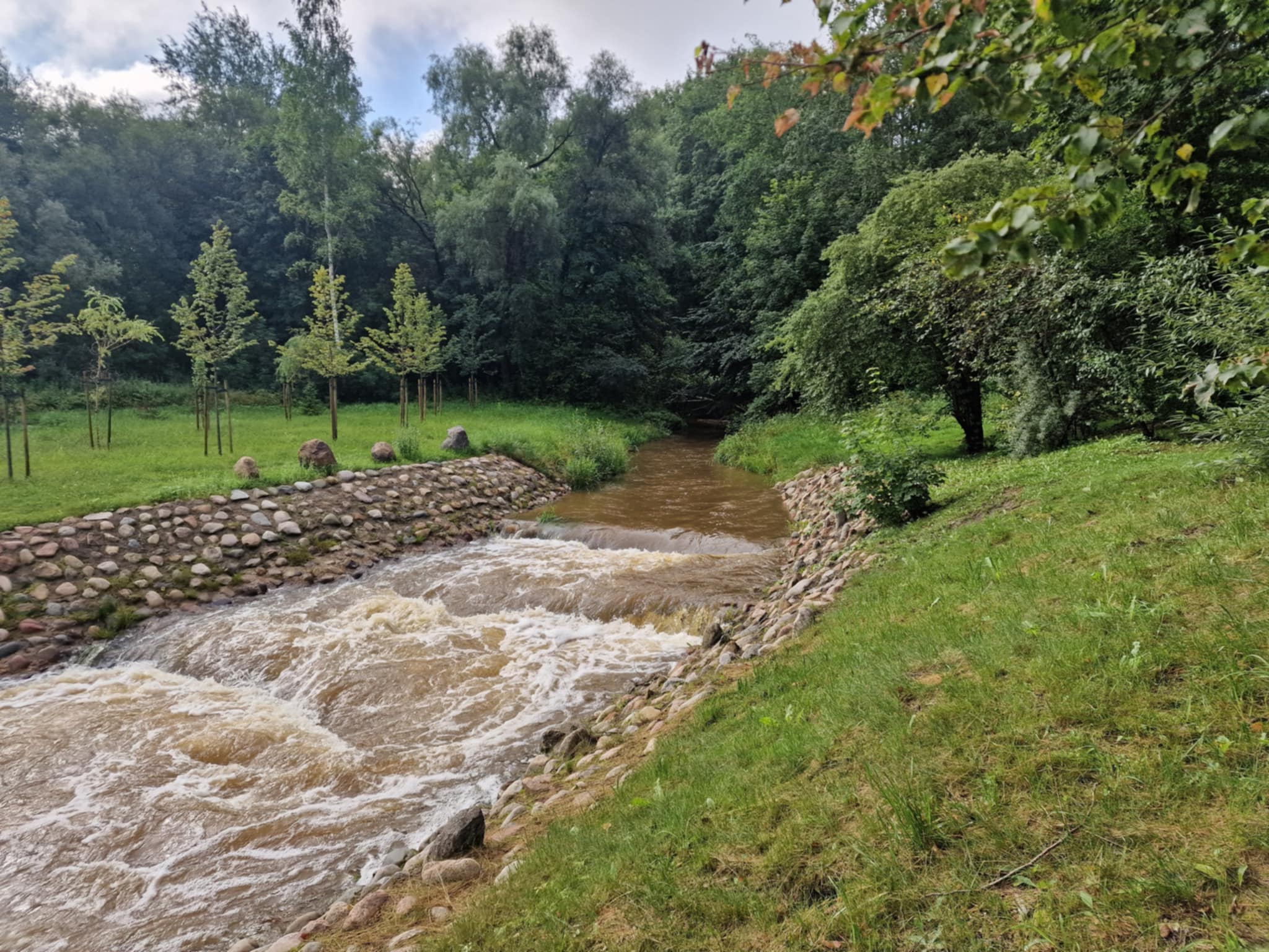 Anykštos upė Anykščiuose, per kaskadas teka net pasišokinėdama, bet iš krantų nelipa.
