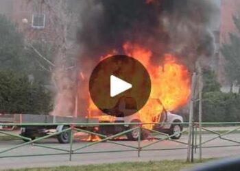 Socialiniuose tinkluose dalinamasi vaizdo įrašu, kuriame užfiksuotas Anykščiuose degantis automobilis. Gaisras įvyko šeštadienio rytą, Ramybės mikrorajone, netoli parduotuvės „Norfa“.
