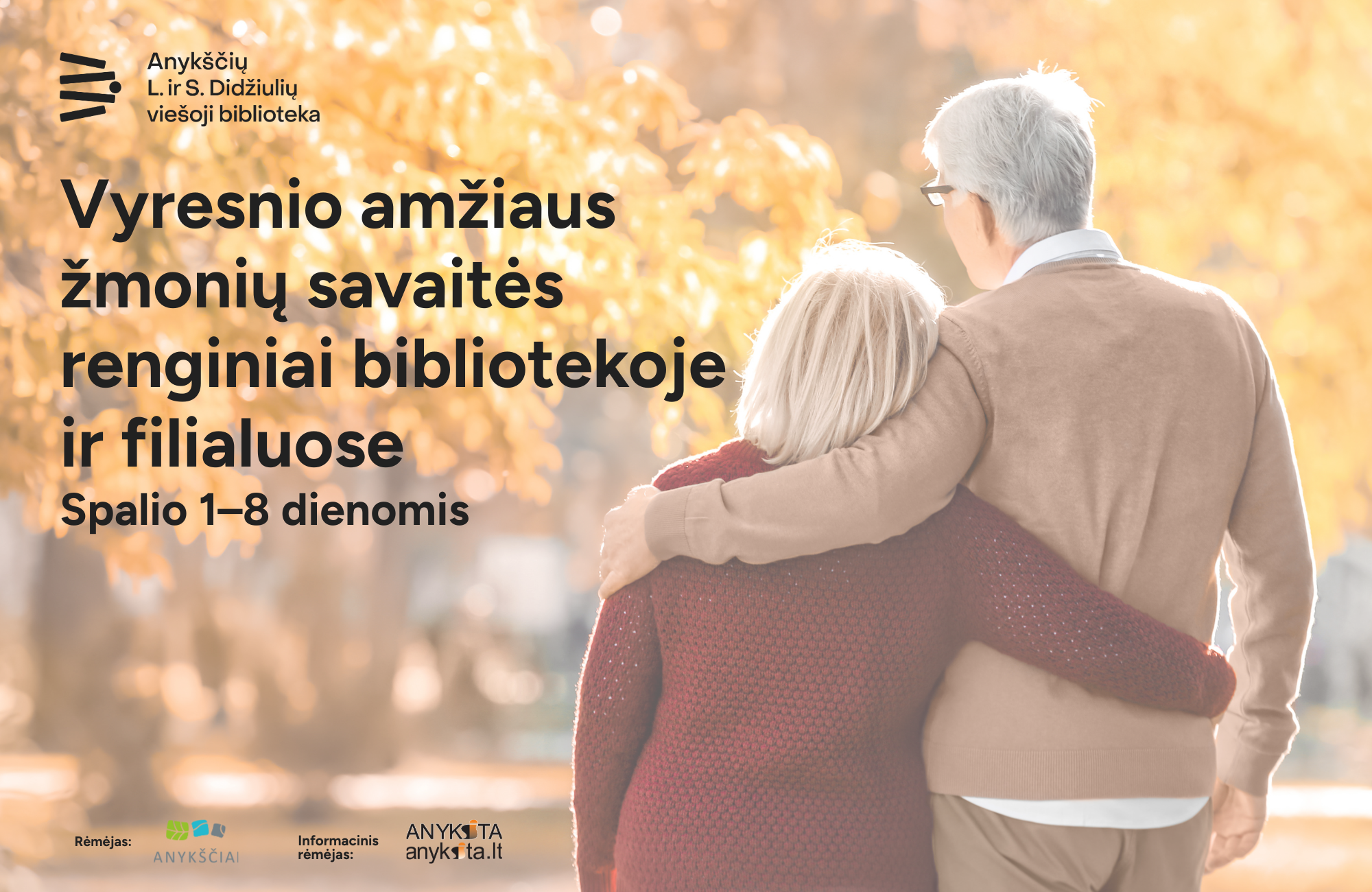 Anykščių rajono savivaldybės Liudvikos ir Stanislovo Didžiulių viešosios bibliotekos veiklos Vyresnio amžiaus žmonių savaitės, skirtos Tarptautinei pagyvenusių žmonių dienai paminėti, metu kviečiame į veiklas Anykščių mieste ir rajone.